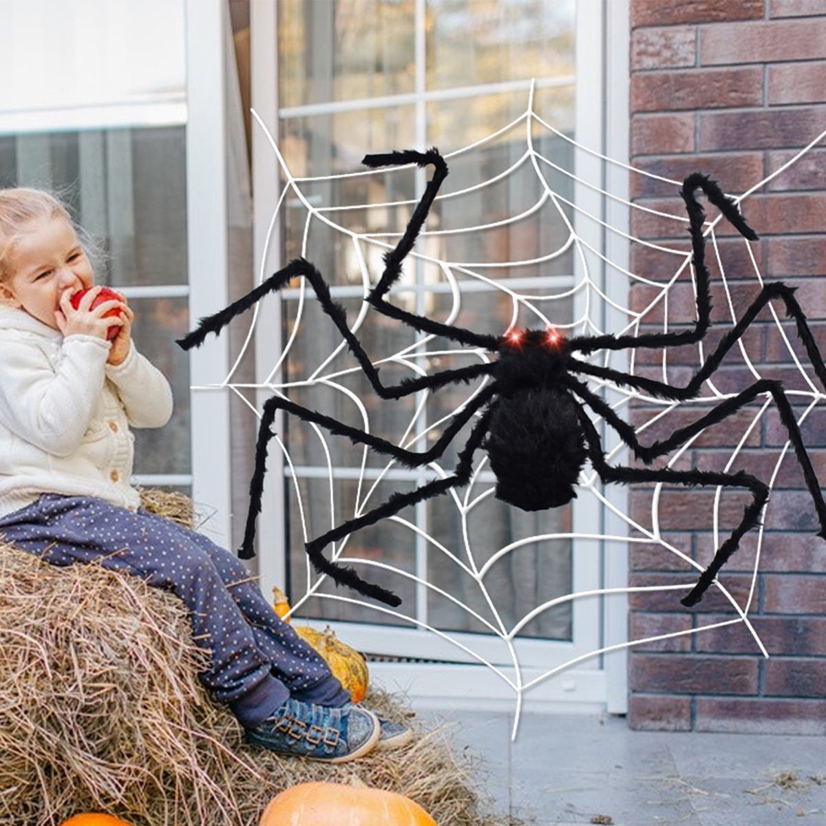 Fyjucpa Halloween Spider 48 4 Inch Sound Activated Giant Spider With Bendable Legs Plush Red Eyes Fake Spider Halloween Decoration With Spider Web For Haunted House Garden Yard Walmart Com